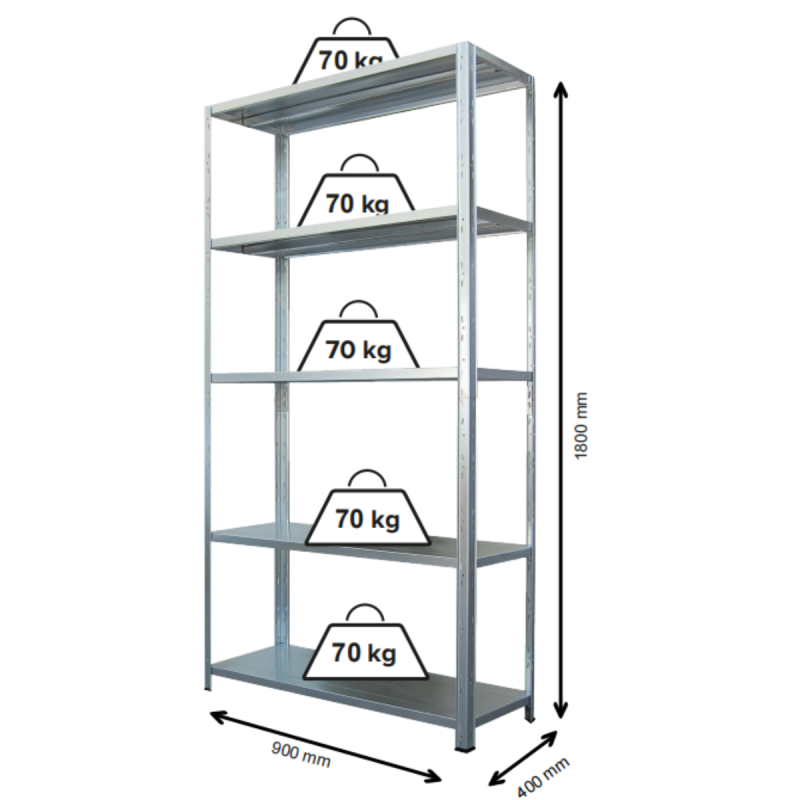 Стелаж 900x400x1800mm с 5 рафта до 70кг, безболтов, цинк