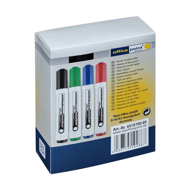 Маркер за бяла дъска Office Point с объл връх - син, зелен, червен, черен