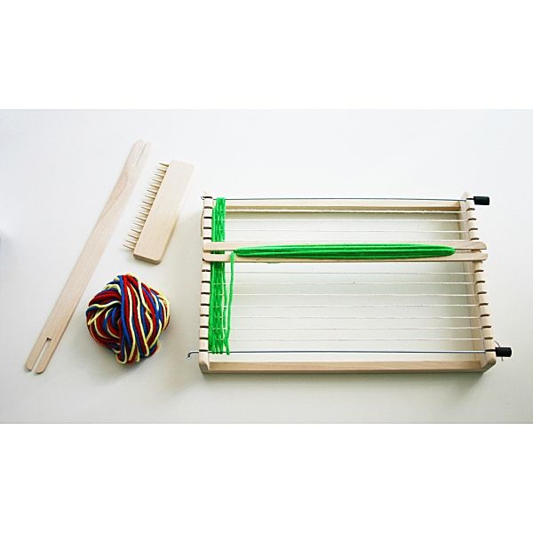 Включва станче, 1 гребен, 2 совалки и 4 вълнени конеца.